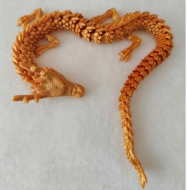 3D打印定制龍年擺件過(guò)程是,先在電腦上擺好造型,加上支撐。加好支撐的文件就可以上機(jī)打印了,選擇的是SLA工藝,白色樹(shù)脂光固化一體成型。光敏樹(shù)脂打印,精度高、成型快,易于模型后期打磨和上色。3D打印完成后經(jīng)過(guò)洗件、去支撐、打磨,龍的白模就做好了。接下來(lái)就可以對(duì)龍模型進(jìn)行上色處理了,處理完成就是成品了,下面看看3D打印龍擺件的成品吧。