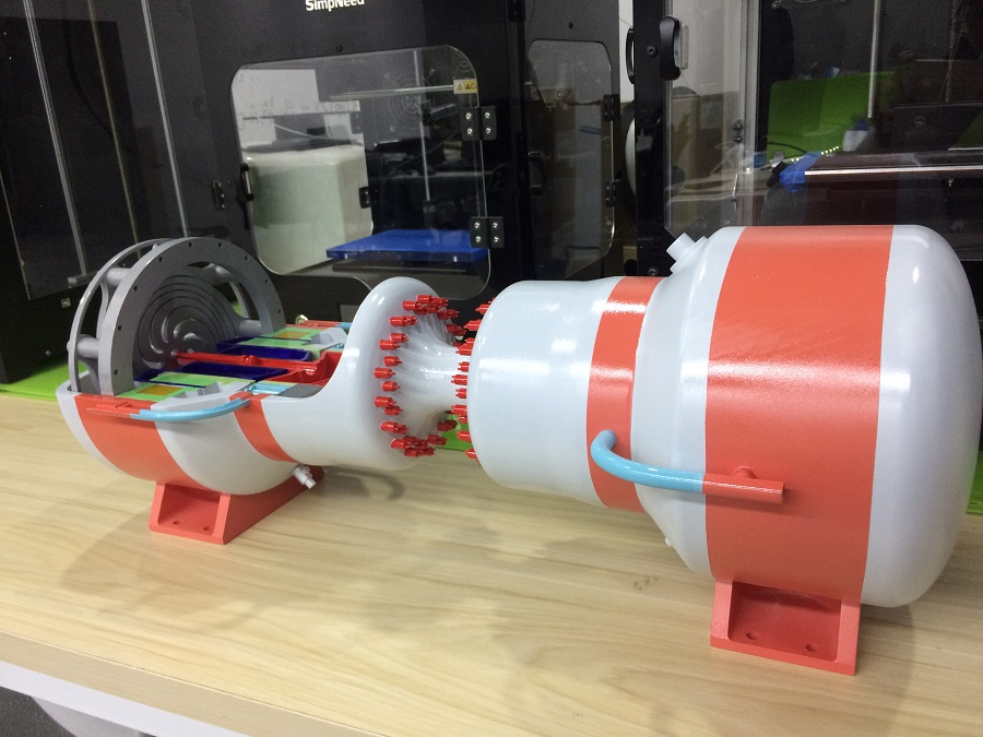 用P600 SLA光固化3D打印設(shè)備打印出高精度白模,成功地模擬了海默流量計產(chǎn)品的尺寸和結(jié)構(gòu)特征,然后再經(jīng)過噴漆上色等后處理工藝,在最快的時間內(nèi)完成了參展模型的交付。